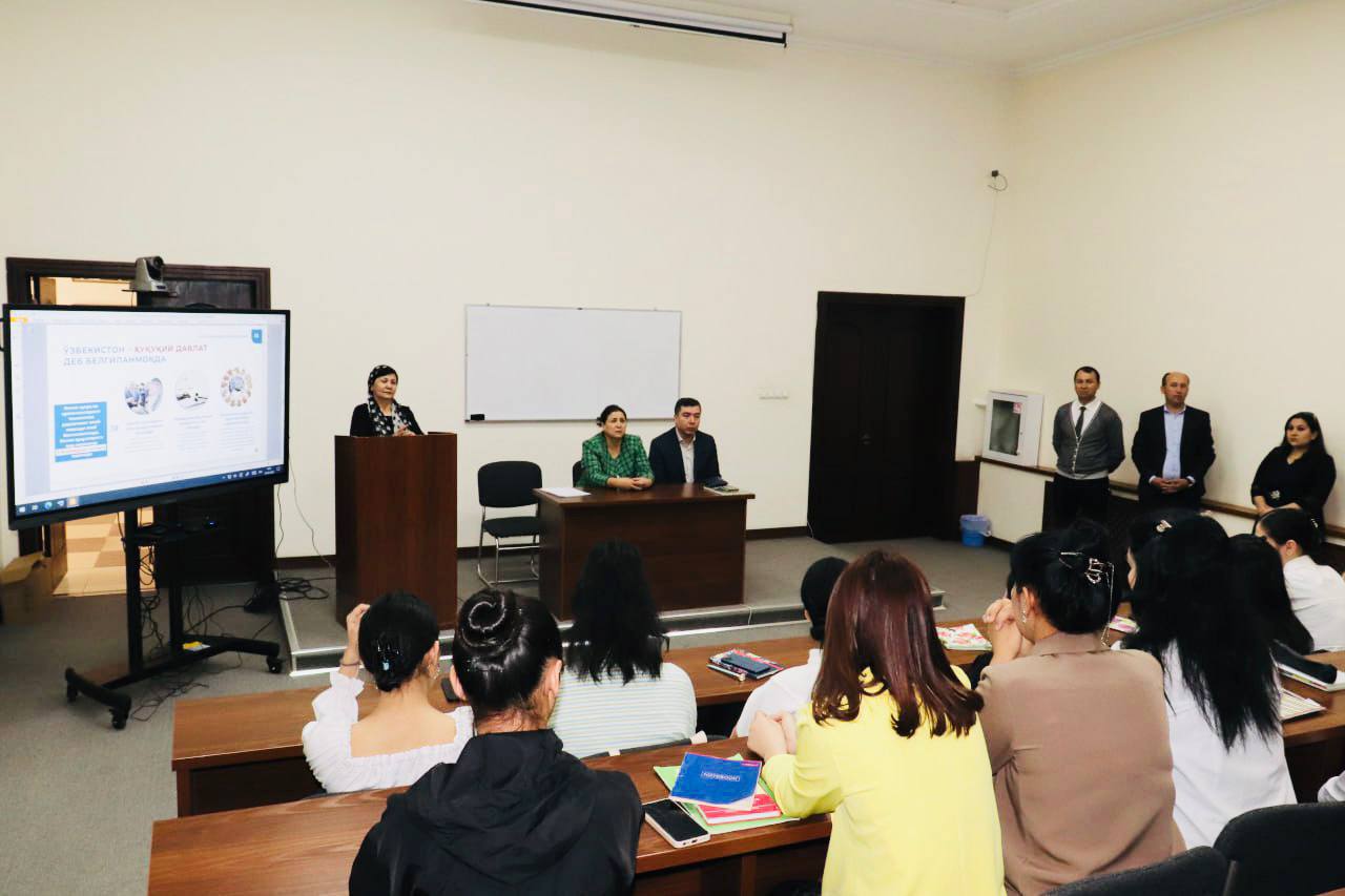 Tadbirda, joriy yilning 30-aprel kuni bo’lib o’tadigan referendum jarayonida Bosh Qomusimiz – Konstitutsiyamizga kiritilayotgan o’zgartirish va qo’shimchalar haqida keng qamrovli tushunchalar berildi.