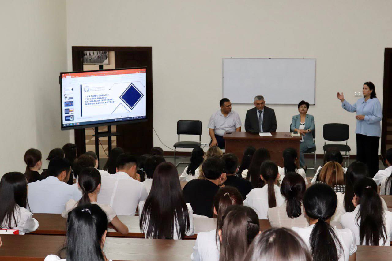 “Vatan ozodligi yo’lida shahid ketganlar xotirasi mangu barhayotdir” mavzusiga bag’ishlangan darsda talaba-yoshlarimizga mustaqilligimizgacha bo’lgan tarixiy jarayonlar, Jadid bobolarimiz hayoti, nohaq qatag‘onga uchragan insonlar haqida so’zlab berdilar.