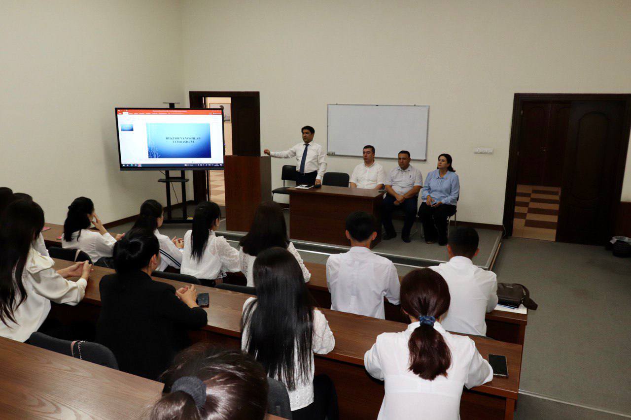 Talabalar bilan suhbat davomida rektor akademiyaning ichki nizomi, tartib-qoidalari, o’qish jarayonlari haqida ham ma’lumot berib, talabalarni intizomli hamda mas’uliyatli bo’lishga chorladi.