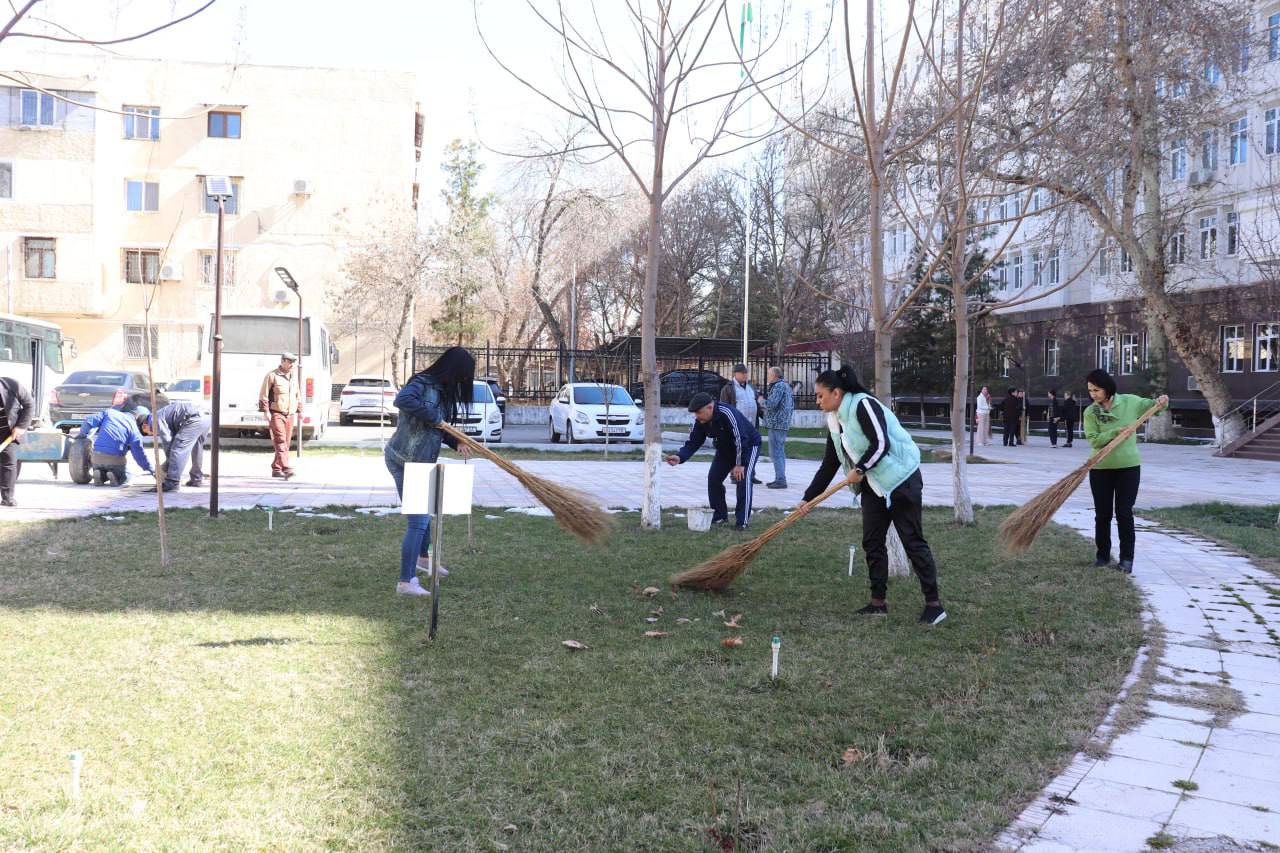 Qishning oxirgi hazonlari supurilib, daraxtlar shoxlari tekislanib, oqlandi, atrof obodonlashtirilib, ko’kalamzorlashtirildi va saranjom holatga keltirildi.