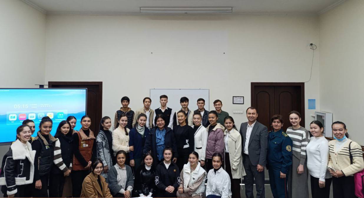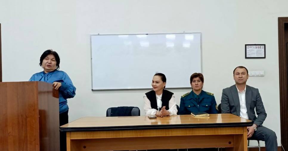 Suhbatni Yoshlar masalalari va ma’naviy-ma’rifiy ishlar bo’yicha birinchi prorektor Sultanova Rushana Ramilovna ochib berdi hamda akademiya profilaktika inspektori, katta leytinant Go’zal Matisakova taklifi bilan tashrif buyurgan tadbir mehmoni Toshkent davlat yuridik universiteti professori, yuridik fanlar doktori Feruza Muhitdinova bilan tanishtirdi.