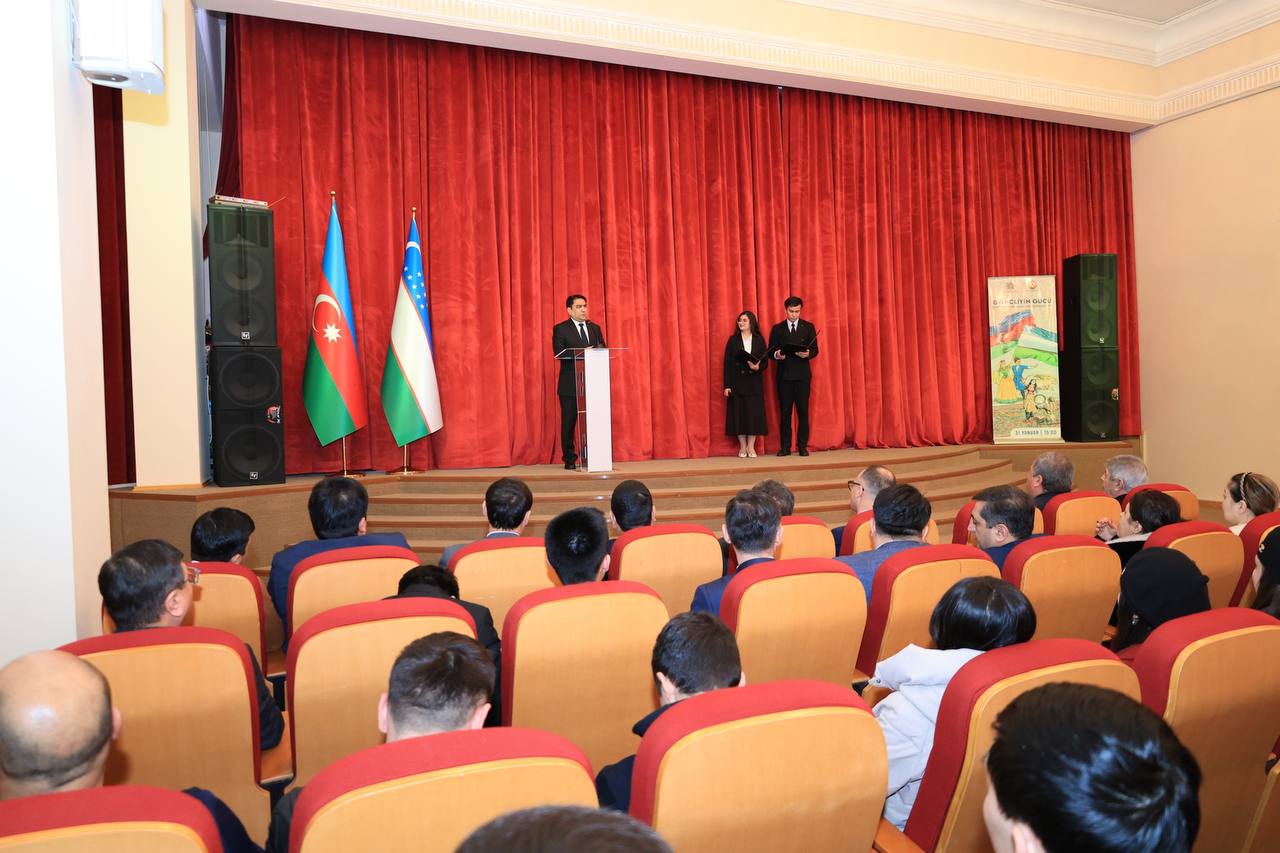 2-fevral – Ozarbayjon Respublikasida “Yoshlar kuni” munosabati bilan Toshkentdagi Haydar Aliyev nomli Ozarbayjon Madaniyat markazida ma’naviy–ma’rifiy tadbir o’tkazilib, unda Ozarbayjonning O‘zbekistondagi elchixonasi xodimlari, mamlakatimiz fan, madaniyat va san’at namoyandalari, jamoatchilik vakillari, talaba-yoshlar ishtirok etdilar. Ozarbayjonning O‘zbekistondagi favqulodda va muxtor elchisi Husayn Guliyev 1997 yilda ozar xalqining umummilliy yetakchisi Haydar Aliyev tomonidan ta’sis etilgan “Yoshlar kuni” haqida ma’lumot berar ekan, Ozarbayjonda ham, O‘zbekistonda ham jamiyatning yetakchi kuchi bo‘lgan yosh avlodni yuksak saviya, milliy qadriyatlar asosida tarbiyalash hamda ularga davlat siyosati darajasida e’tibor va g‘amxo‘rlik ko‘rsatish muhim masalalardan biri yekanini ta’kidladi.