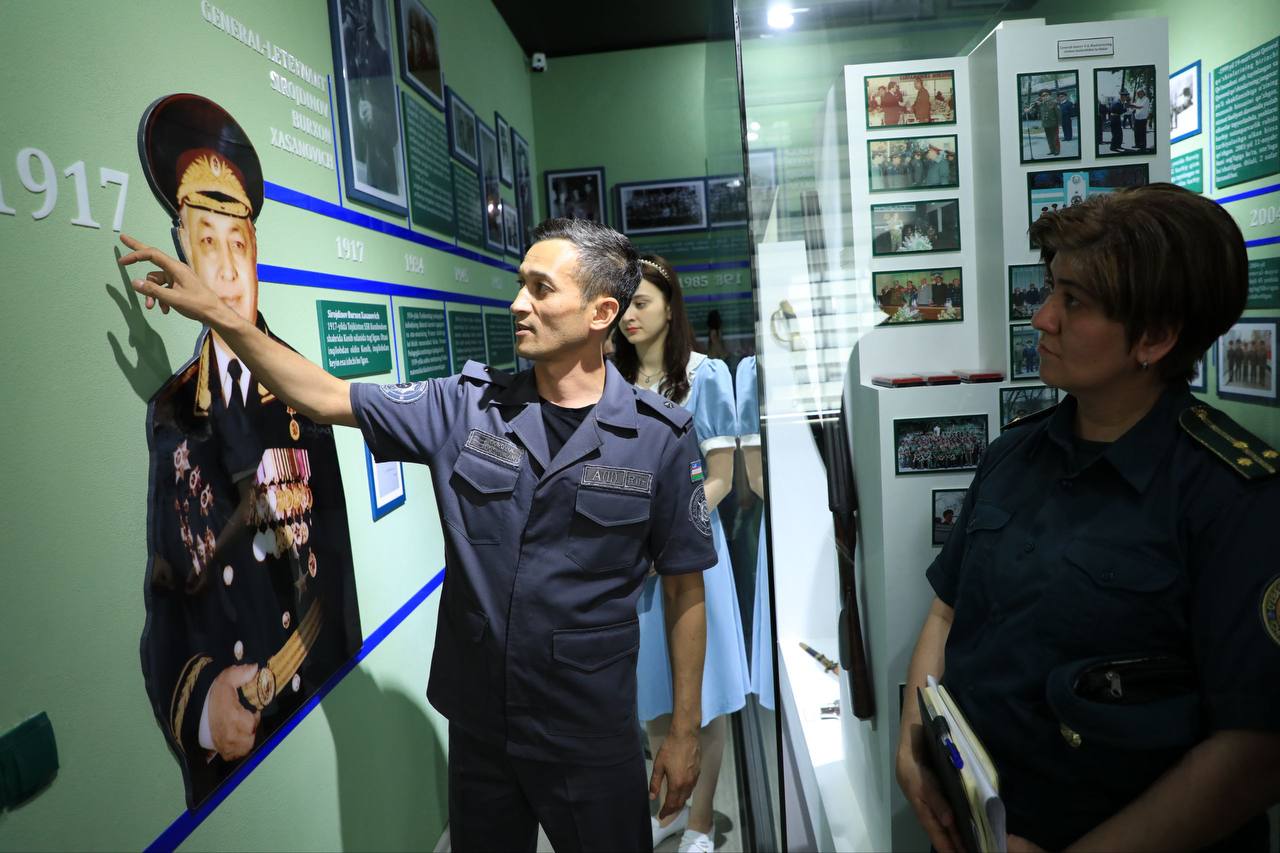 Gvardiya qo‘shinlari qo‘mondonligi boshqarmasi boshlig‘i mayor N.I.Ibragimov tarixiy ma’lunotlar haqida izoxlar berib, harbiy qismda xizmat o’tayotgan ayol xodimalar va ularning xizmat majburiyatlari bilan tanishtirdi.