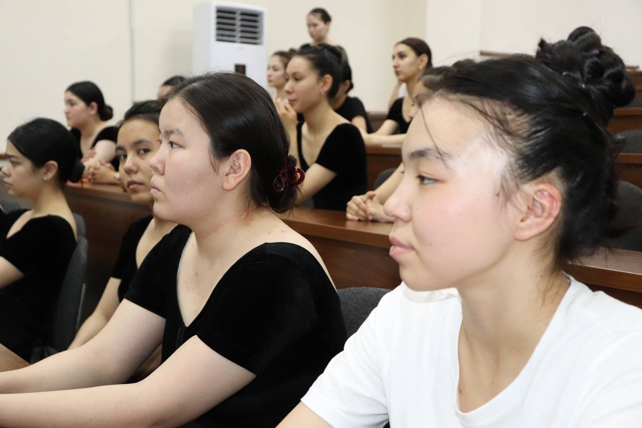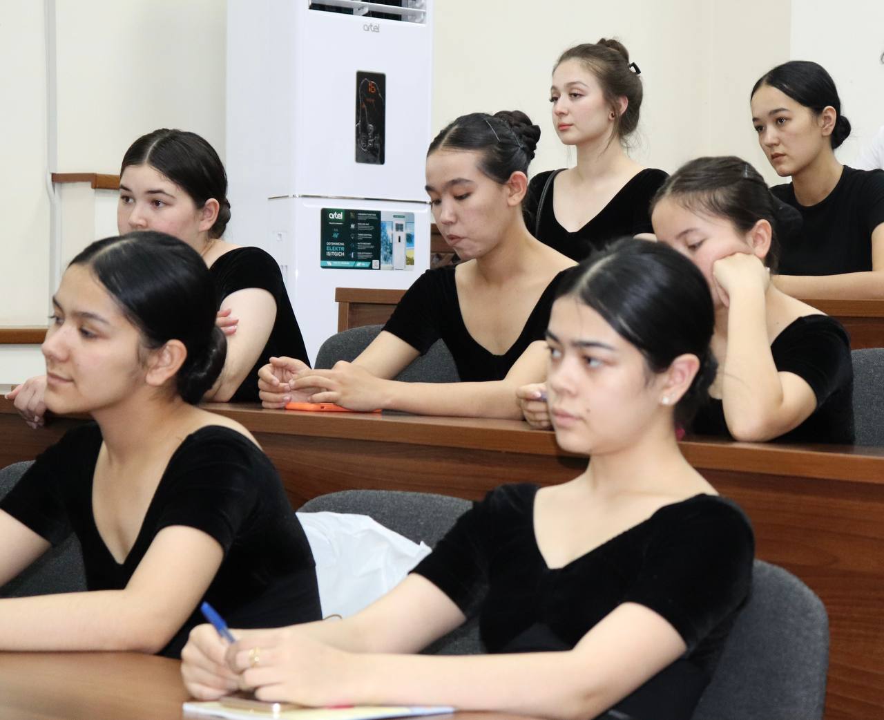 Tadbirda akademiyaning Yoshlar masalalari va ma’naviy-ma’rifiy ishlar bo‘yicha birinchi prorektori, O‘zbekiston xalq artisti Sultanova Rushana Ramilovna talabalar bilan ochiq muloqot o‘tkazdi.