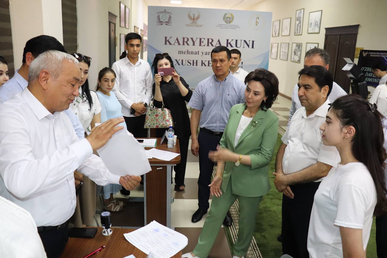 Mehnat yarmarkasiga Toshkent shahar Yakkasaroy tuman hokimi Nilufar Allabergenova tashrif buyurib, akademiyaning yetakchi ish beruvchi tashkilotlari xususan, О‘zbekiston Respublikasi Madaniyat vazirligi tizim tashkilotlari, Toshkent shahar kambag‘allikni qisqartirish va bandlik bosh boshqarmasi va uning hududiy bо‘limlari va boshqa bir qator manfaatdor tashkilotlar о‘zlarida mavjud bо‘lgan bо‘sh ish о‘rinlari bilan ishtirok etish jarayonlari bilan tanishdilar.