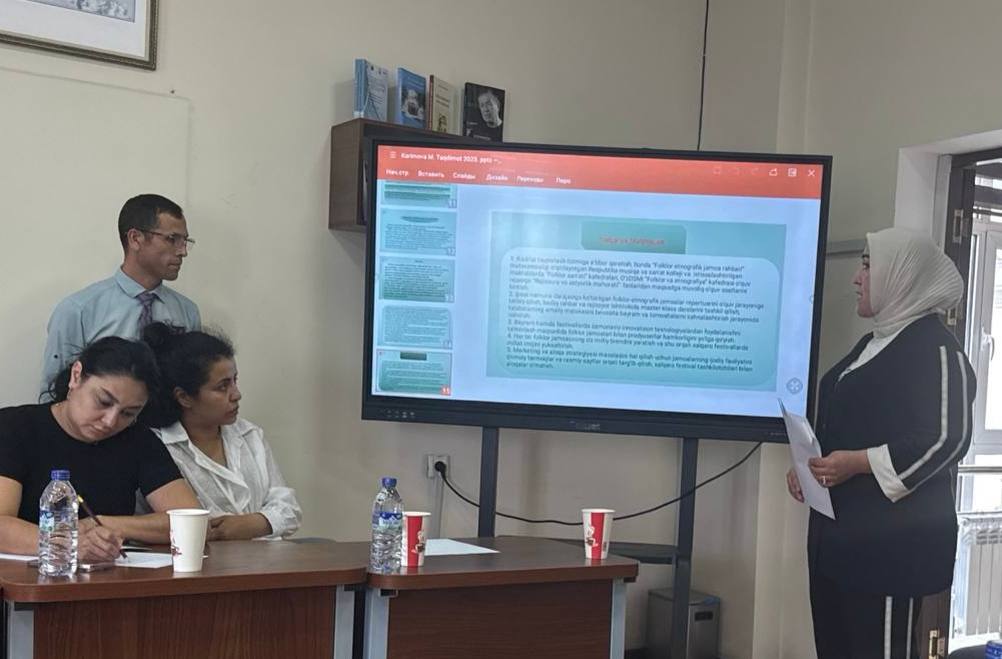 Bugun 29-may kuni O‘zbekiston davlat xoreografiya akademiyasida 17.00.07 – Teatr san’ati ixtisosligi boyicha Karimova Muqaddas Abdusamatovnaning “Folklor – etnografiya tomoshalarida rejissuraning о‘ziga xos xususiyatlari” mavzusida san’atshunoslik fanlari boʻyicha falsafa doktori (PhD) dissertatsiyasi bo‘yicha ilmiy seminar o‘tkazildi.