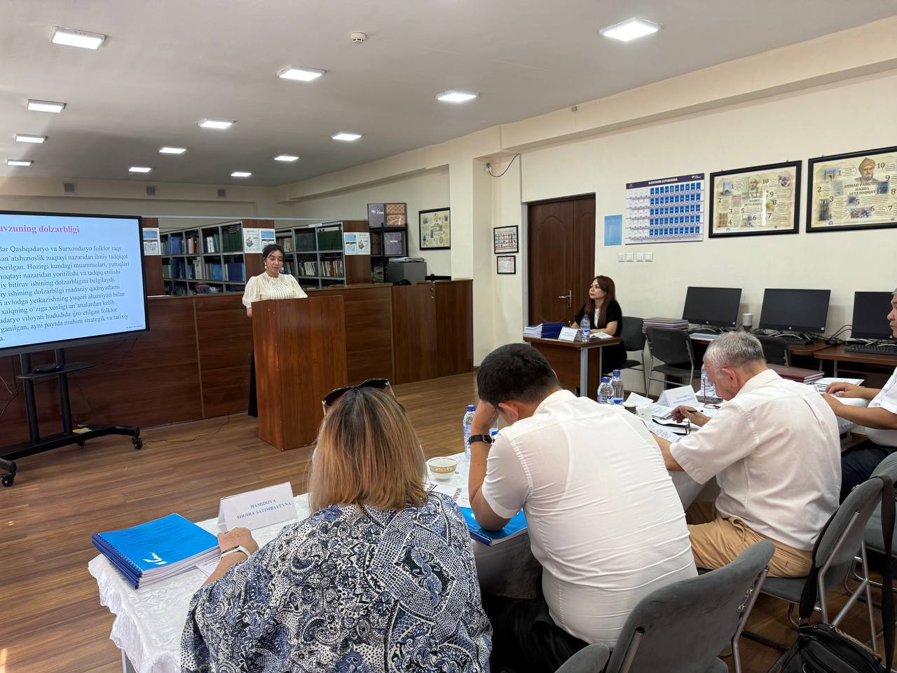 Komissiya raisi sifatida О‘zbekiston Respublikasi Fanlar akademiyasi San’atshunoslik ilmiy-tadqiqot instituti “Teatr va xoreografiya” bо‘limi boshlig‘i, san’atshunoslik fanlari doktori Muxtarov Ildar Askadovich, tashqi a’zolar О‘zDSMI “San’atshunoslik va madaniyatshunoslik” kafedrasi mudiri, san’atshunoslik fanlari bо‘yicha falsafa doktori (PhD), dotsent Abduvoxidov Faxriddin Menigaliyevich, О‘zDSMI dotsenti Hamidova Shoira Satimbayevnalar ishtirok etdilar.