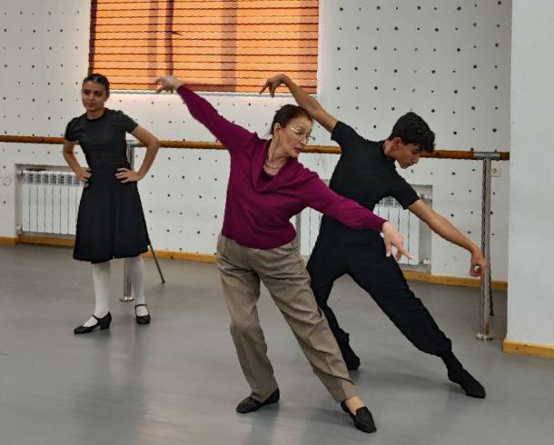 O‘zbekiston davlat xoreografiya akademiyasi “Xoreografiya pedagogikasi” kafedrasi dotsenti Yeshimbetova Aydin Ibadullayevna tomonidan joriy yilning 16-oktyabr kuni Respublika xoreografiyaga ixtisoslashtirilgan maktab-internatida bitiruvchi sinf o‘quvchilari uchun “Xalq sahna raqsi” fanidan mahorat darsi o‘tkazildi.