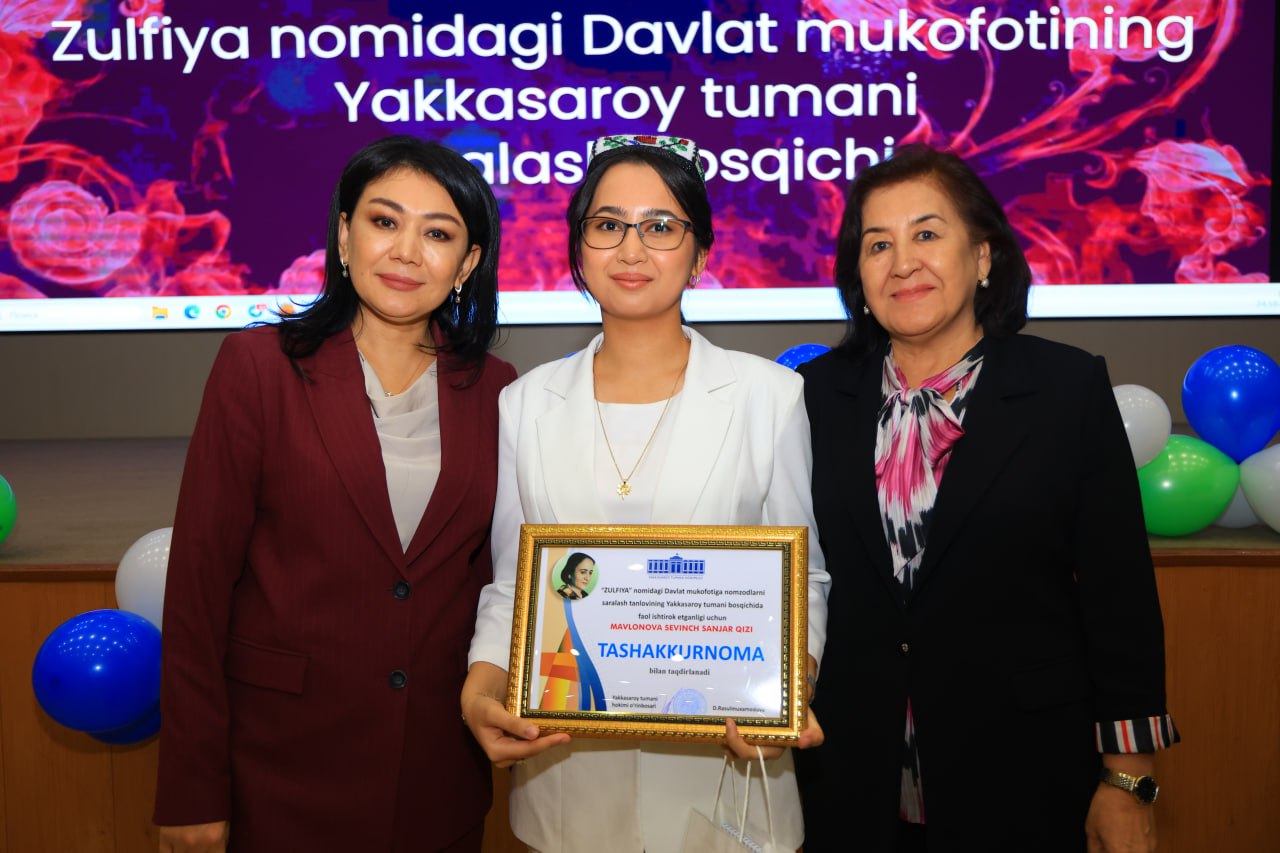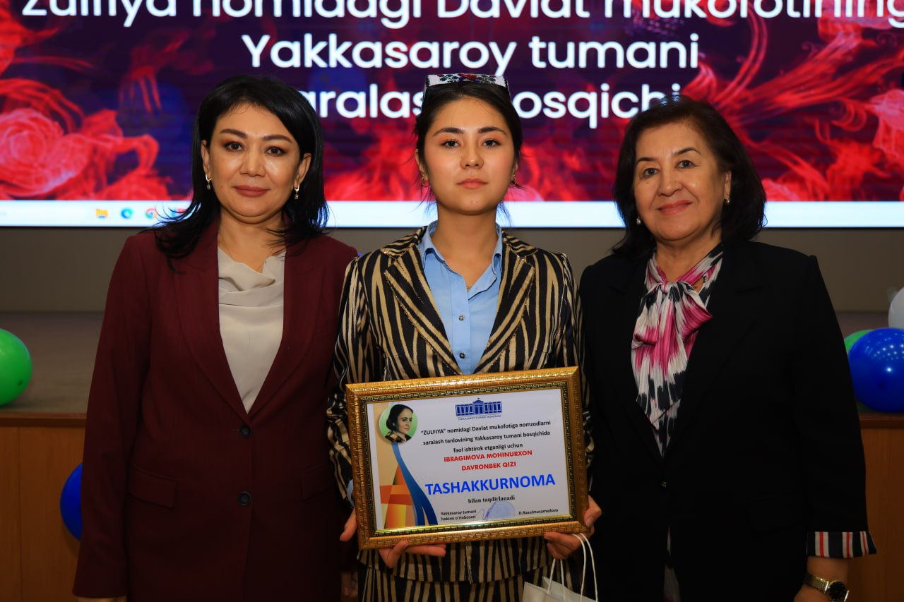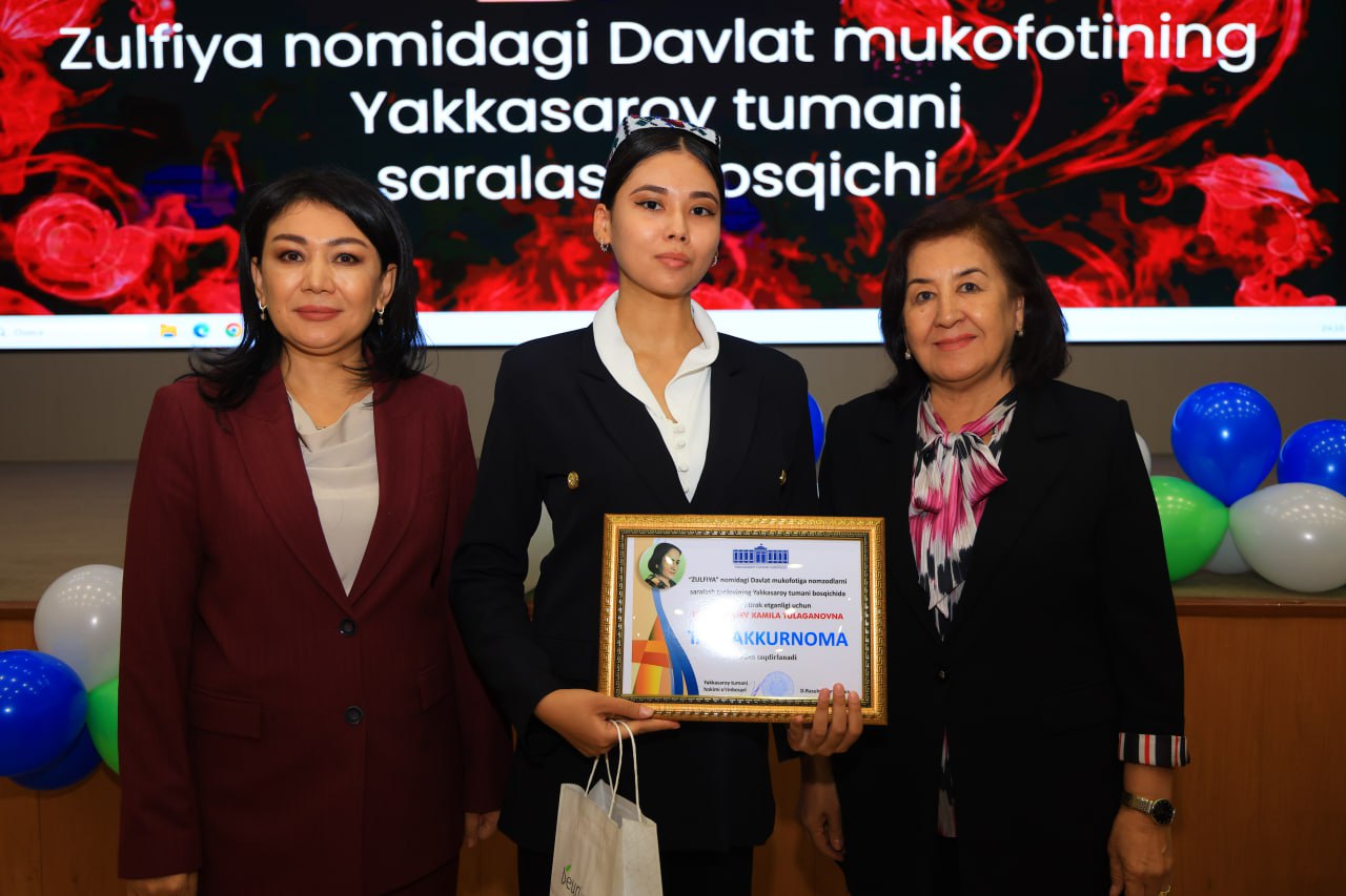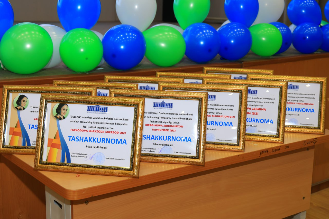 Yakkasaroy tumani hokimligi Oila va xotin-qizlar bo‘limi tomonidan “Zulfiya” nomidagi Davlat mukofotiga talabgorlarni aniqlash maqsadida tanlovning tuman bosqichi o‘tkazildi.