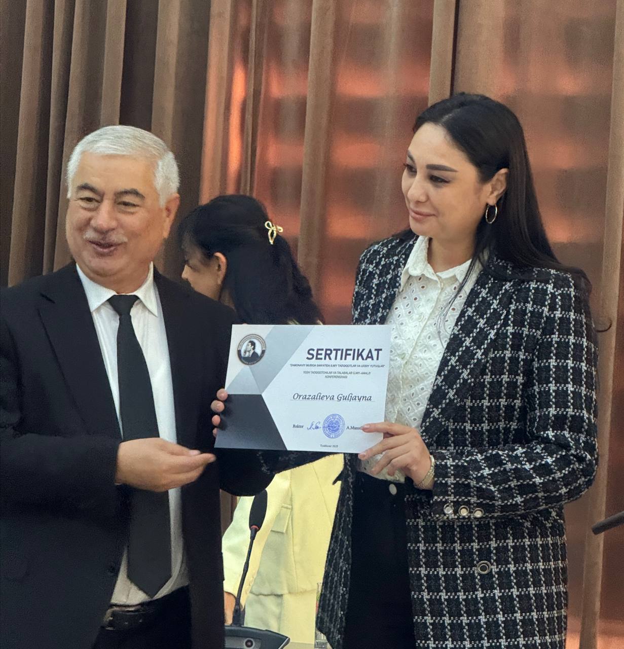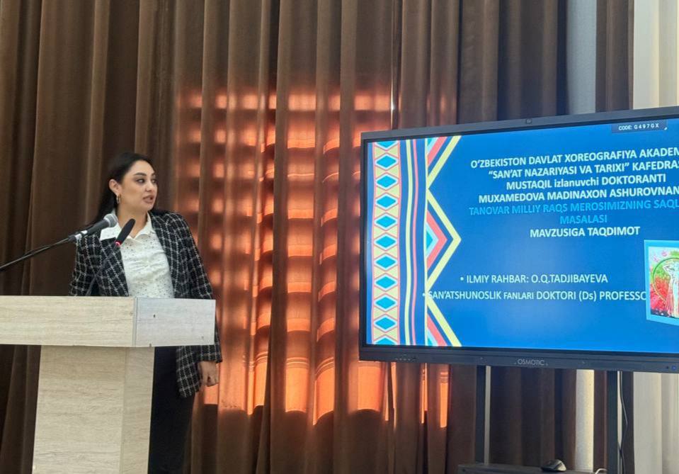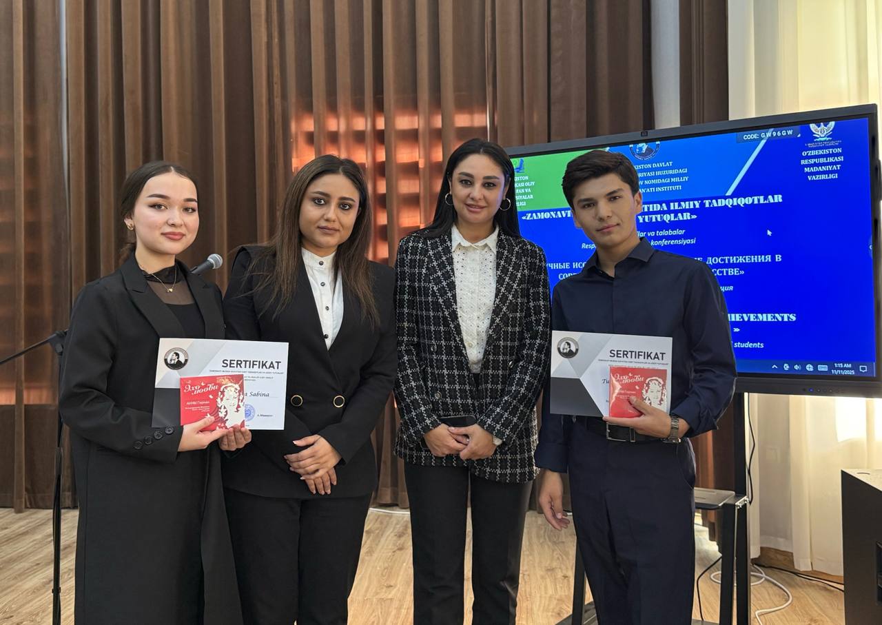 O‘zbekiston davlat konservatoriyasi huzuridagi Botir Zokirov nomidagi Milliy estrada san’ati institutida bugun, 11-noyabr kuni bo’lib o’tgan, “Zamonaviy musiqa san’atida ilmiy tadqiqotlar va ijodiy yutuqlar” mavzusida yosh tadqiqotchilar va talabalar Respublika ilmiy-amaliy konferensiyasida (https://t.me/BZokirovnomidagiMESI/17299) O’zbekiston davlat xoreografiya akademiyasi mustaqil tadqiqotchisi Madina Muxamedova, akademiyaning “San’atshunoslik“ ta’lim yo’nalishi 3-bosqich talabalari Zokirova Sabina va Turmamatov Bekzodlar faol ishtirok etib, ma’ruza qildilar.