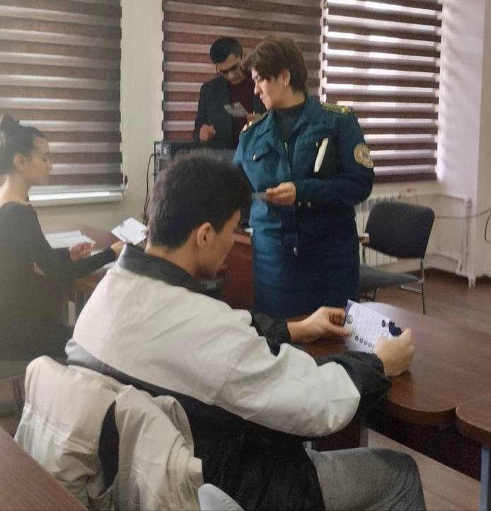 Tadbirda Yakkasaroy tumani IIO FMB HPB ATSJOOB inspektori, katta leytenant B.U.Tangirov, Yakkasaroy tuman Xotin-qizlar masalalari bo‘yicha katta inspektor, podpolkovnik F.Samatovalar qatnashib, talabalarga mavzu yuzasidan muhim tavsiyalar berdilar.