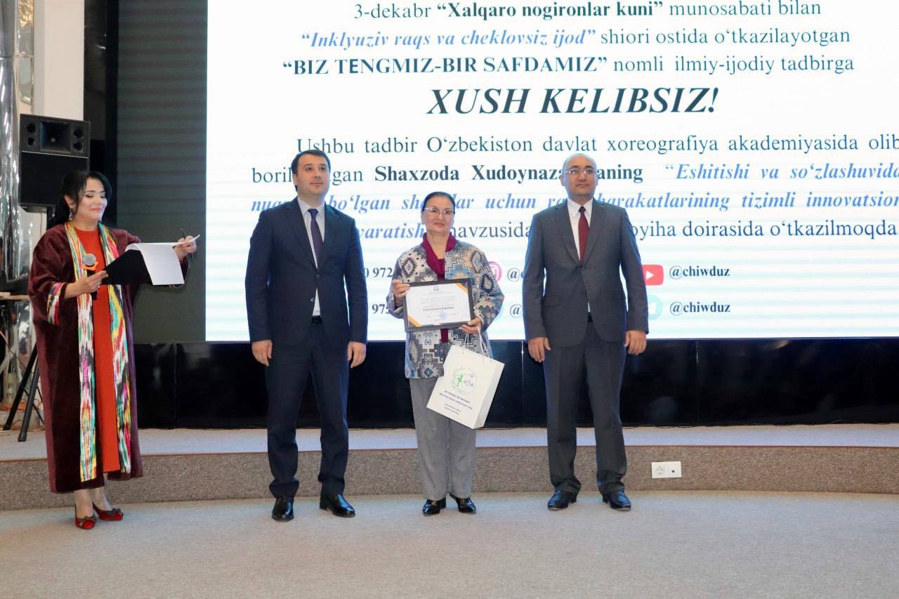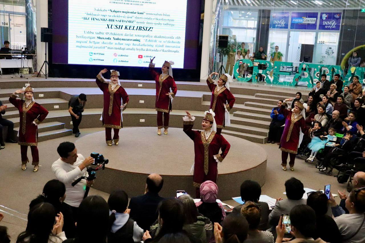 Oliy ta’lim, fan va innovatsiyalar vazirligi, Madaniyat vazirligi hamda O’zbekiston davlat xoreografiya akademiyasi hamkorlikda 3-dekabr — Xalqaro nogironlar kuni munosabati bilan “Inklyuziv raqs va cheklovsiz ijod” shiori ostida “Biz tengmiz — bir safdamiz” nomli ilmiy-ijodiy tadbir bо‘lib о‘tdi.