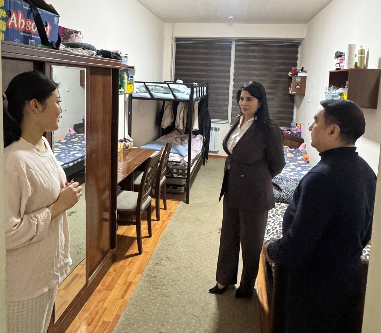 O’rganish davomida talabalar yashash sharoitlari, xonalar va umumiy foydalanish hududlarining holati bilan tanishildi. Shuningdek, turar joyda istiqomat qilayotgan talabalar bilan suhbat o‘tkazilib, ularning o‘qish jarayoni, kundalik turmush sharoitlari va mavjud muammolari yuzasidan fikrlari tinglandi.