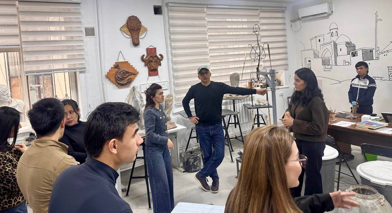 Dars jarayonida talabalar nafaqat soha bo‘yicha nazariy bilimlarini boyitdilar, balki institut talabalari tomonidan yaratilgan ijodiy ishlar bilan yaqindan tanishdilar hamda raqs va haykaltaroshlik san’ati o‘rtasidagi estetik va konseptual bog‘liqlikni tahlil qildilar.