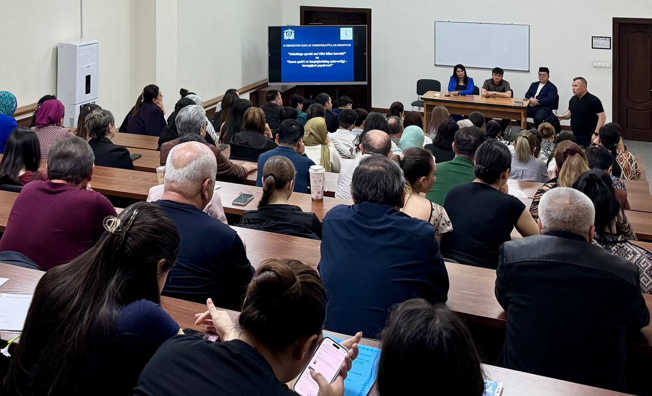 Tadbir davomida bugungi globallashuv sharoitida yoshlarning ongiga turli zararli g‘oyalar singdirilishining oldini olish, ularni mustaqil fikrlashga undash, shuningdek, inson qadri, huquq va erkinliklarini hurmat qilish kabi dolzarb masalalar keng yoritildi.