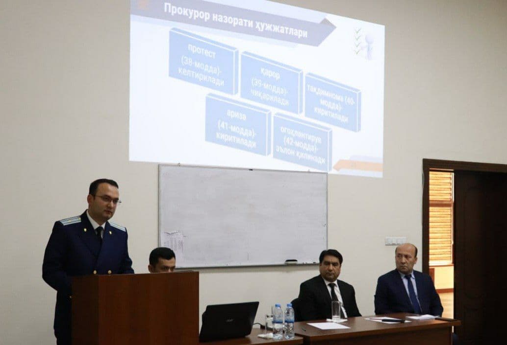 Tadbirni akademiya rektori Shuhrat Toxtasimov kirish so’zi bilan ochib berdi. Shundan so’ng Toshkent shahar prokurorining shaxsiy xavfsizlik bo’yicha katta yordamchisi Boburjon Abdullayev tomonidan prokuratura organlari faoliyati haqida tadbir ishtirokchilariga ko’rgazmali vositalar orqali atroflicha tushuntirishlar berdi. Ma’ruza davomida korrupsiya tushunchasiga to’xtalib, huquqiy savodxonlik va huquqiy madaniyatni oshirish lozimligi to’g’risida so’z yuritdi.