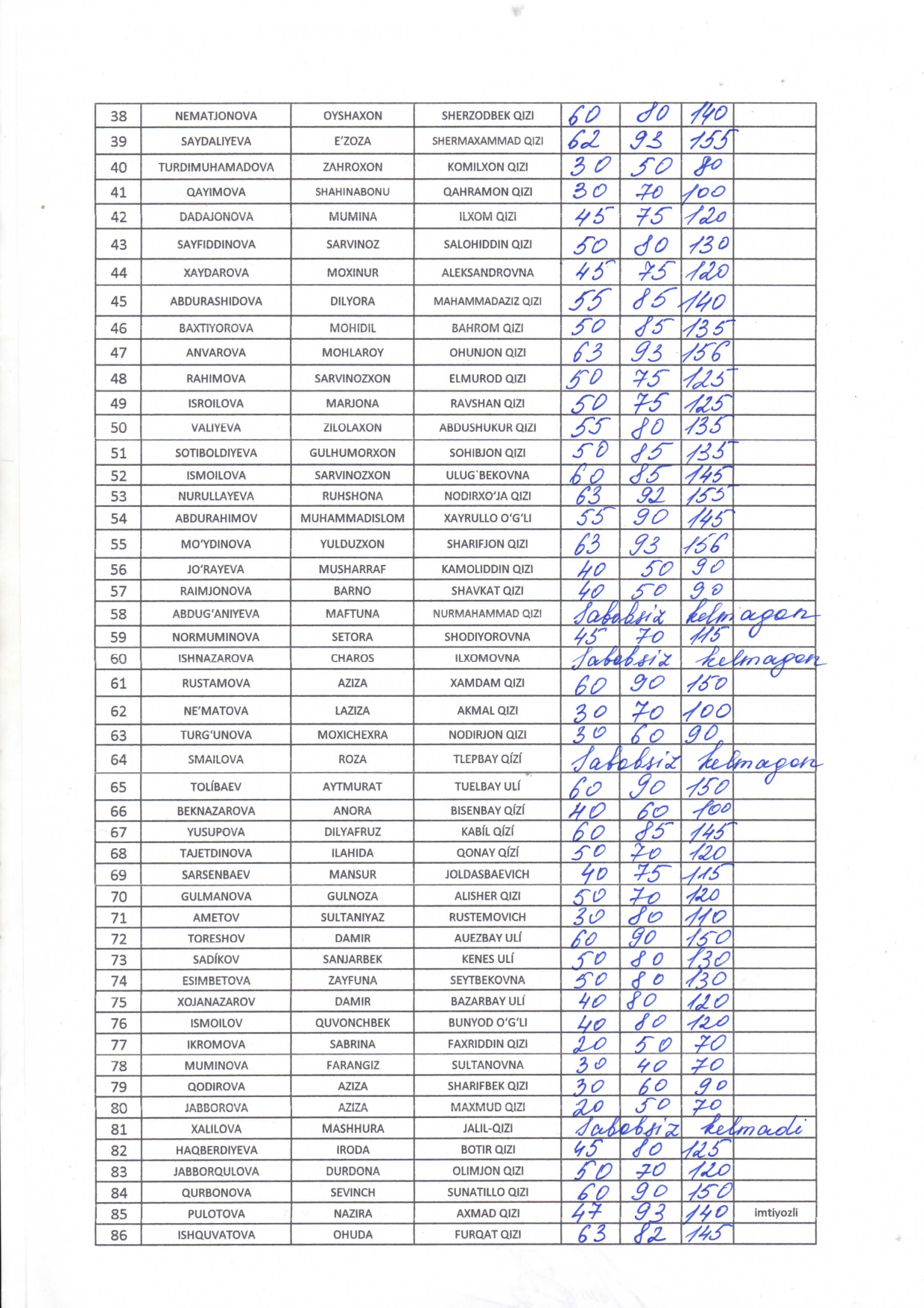 yakuniy natijalari
