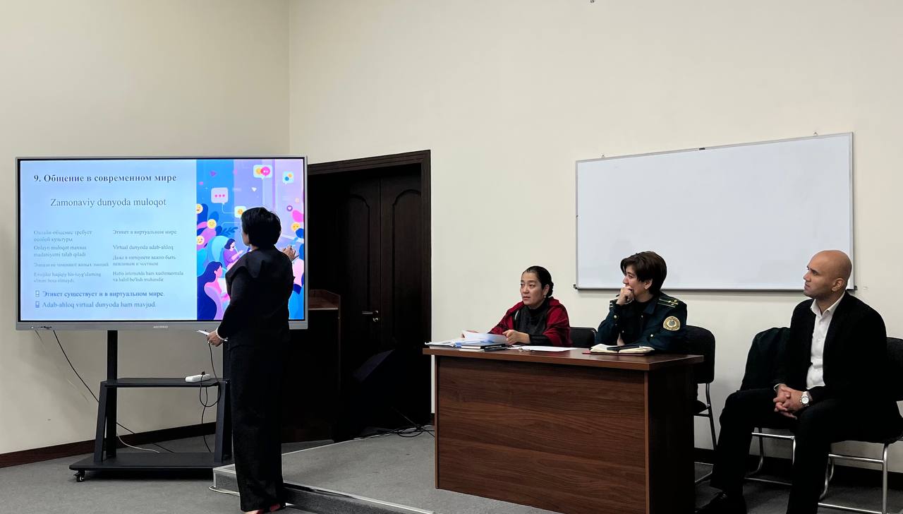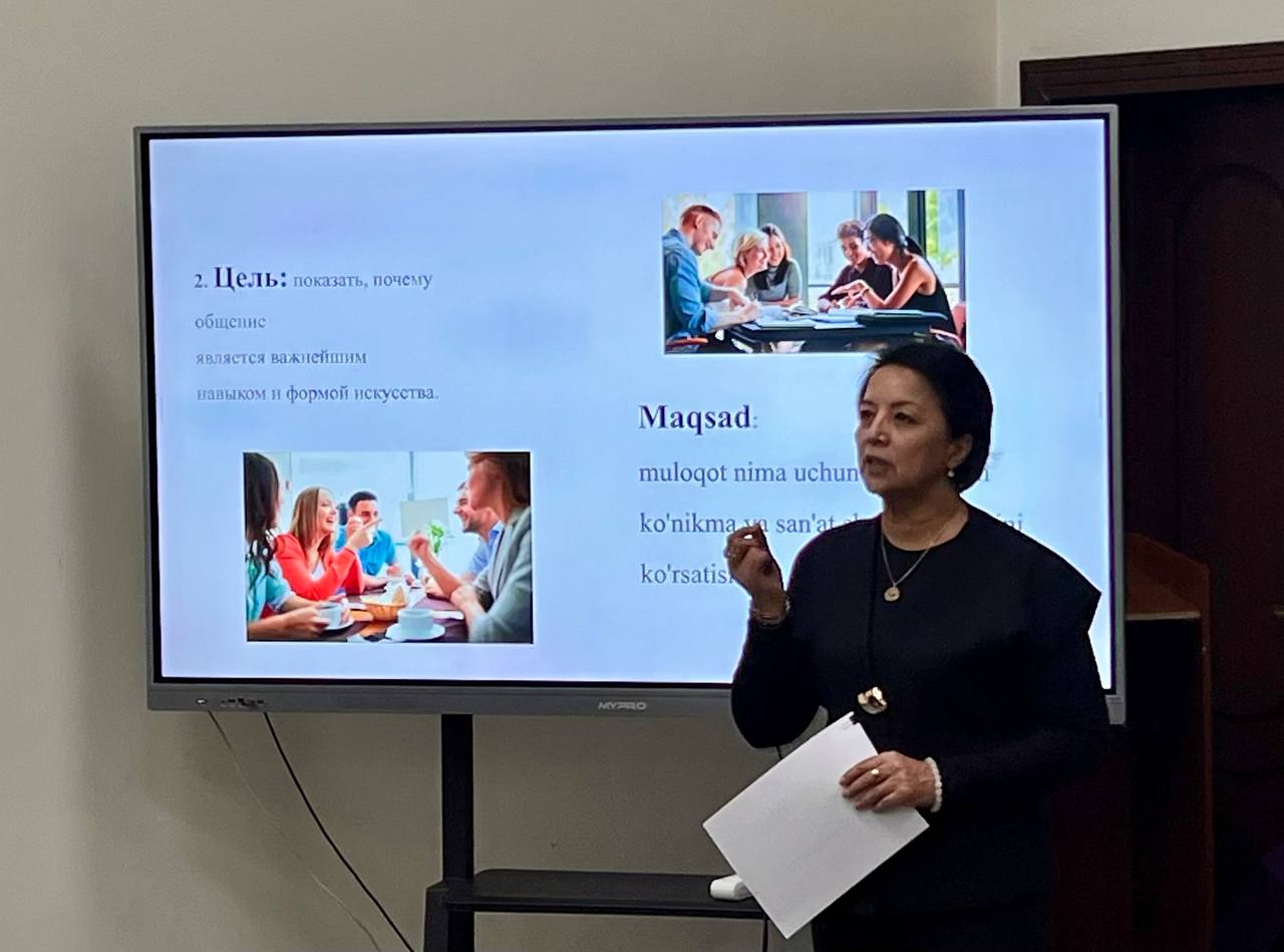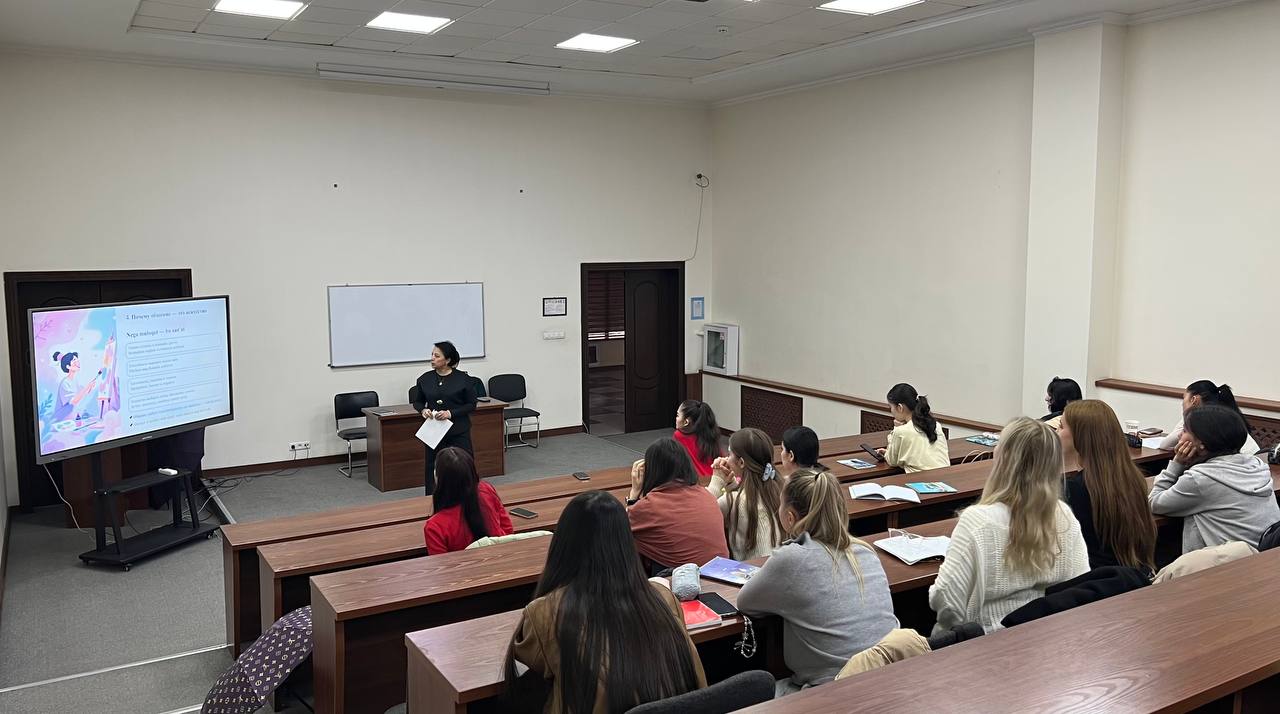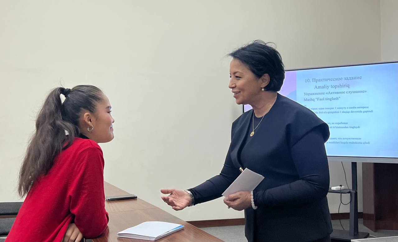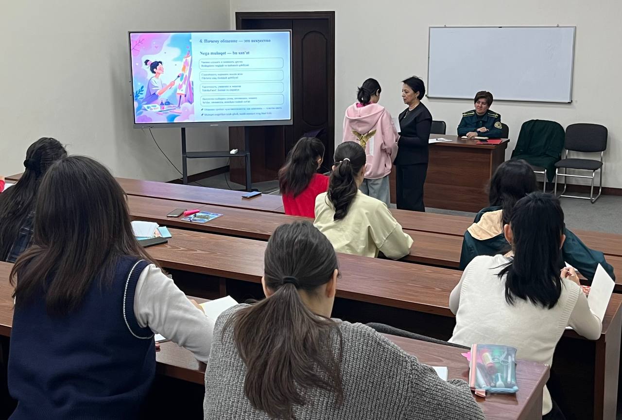 4 ноября 2025 года в Государственной академии хореографии Узбекистана психологом Академии Раъно Холматовой был проведён тренинг со студентами первого курса, направленный на формирование культуры общения, развитие навыков уважительного взаимодействия, умения слушать и быть понятым, а также осознание значимости общения как формы искусства.